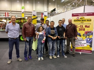 Am Sonntag übernahmen Fritz und seine Freunde die Betreuung des Standes, die leider etwas trocken verlief, da ich Fritz den Schlüssel für den Kofferraum meines P6, wo Bier, Cider und Mineralwasser lagerten, nicht geben konnte. Wir kamen erst kurz vor Ende der Messe wieder am Stand an und wurden von Hr. Hagl einem der Veranstalter der Messe gefragt warum wir denn nicht bei der Preisverleihung waren? Somit war klar, dass unser gemeinsamer Einsatz für die Messe Früchte getragen hatte und unsere Sonderausstellung prämiert wurde.