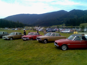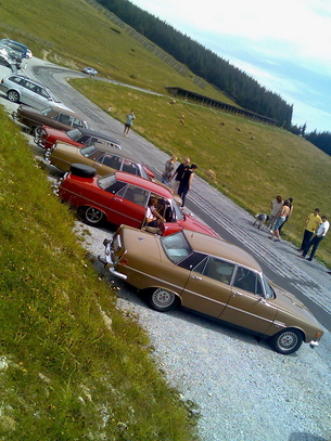 Rund um St. Magdalena finden sich idyllische Straßen, auf denen die klassischen Kraftwagen der Marke Rover bestens aufgehoben sind. BMW, Corvette und ääh... Opel Zafira ergänzten die Rover-Gruppe auf den sonnigen Wegen durch die Oststeiermark.