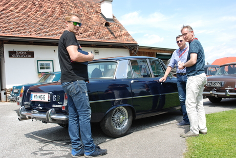 Von zu Hause am frühen Nachmittag des 23. Mai bei Traumwetter weggefahren, lief auf der Autobahn A2 der ROVER P5 aus Zug (CH) kurz vor Graz auf. Die Begrüßung nach zehn Jahren fiel mehr als herzlich aus. Gleiches wiederholte sich kurz darauf in Schwanberg, wo bereits die ersten zwanzig Fahrzeuge eingetroffen waren – und nur nette Menschen, mit denen man sich gerne umgibt. Ja, Einige haben dann doch gefehlt, kennt man sich doch seit Jahrzehnten…