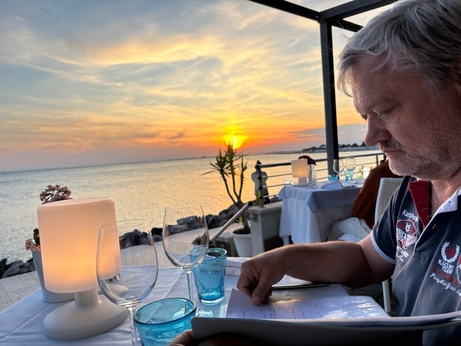 Wir genossen noch einen wunderbaren Sonnentag mit Spazieren dem Meer entlang und Schlendern durch das Städtchen sowie die wärmende Sonne auf dem Balkon des Hotels. Nach dem Nachtessen am Wasser trafen wir zufällig Andreas und Susi auf der Hotelterrasse, wo wir gemeinsam den Abend mit einem Glas Weißwein ausklingen ließen.