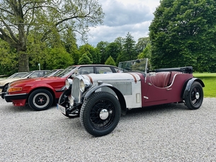 In sortenreiner Aufstellung unserer Fahrzeuge zog unsere Auto-Karawane weiter zum eindrucksvollen Schloss Hernstein, welches eines der bedeutendsten Beispiele für den Historismus in Österreich ist und durch seine Architektur und Ausstattung besticht. Die Ursprünge des Schlosses reichen bis ins 12. Jahrhundert zurück, als an dieser Stelle eine Wehrburg errichtet wurde. Im 19. Jahrhundert ließ Erzherzog Leopold Ludwig das bestehende Gebäude von Architekt Theophil von Hansen im Stil der englischen Gotik umbauen. Der Schlosspark wurde ebenfalls im englischen Stil eines Landschaftsgartens gestaltet und umfasst etwa 12 Hektar. Er verfügt über einen künstlich aufgestauten Teich mit einer Insel, die früher für Seeschlachten genutzt wurde.